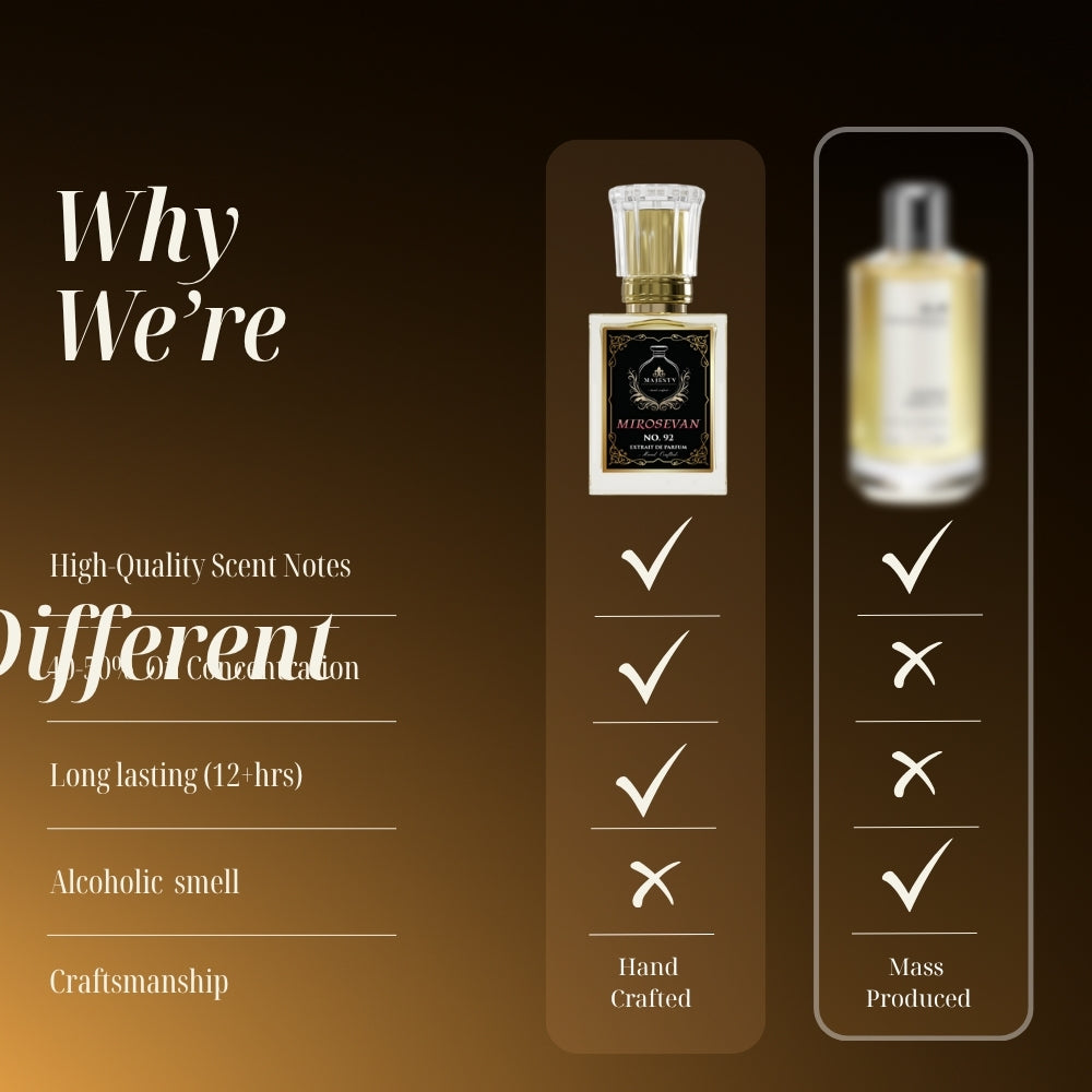Each fragrance at Majesty's is made from scratch, a symphony of meticulously selected notes handcrafted with love and precision.