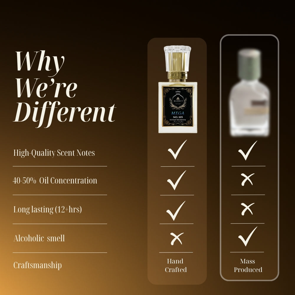 Each fragrance at Majesty's is made from scratch, a symphony of meticulously selected notes handcrafted with love and precision.