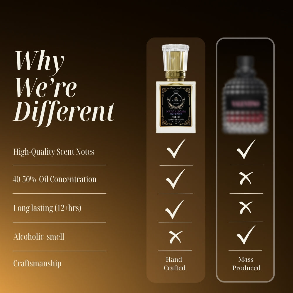 Each fragrance at Majesty's is made from scratch, a symphony of meticulously selected notes handcrafted with love and precision.