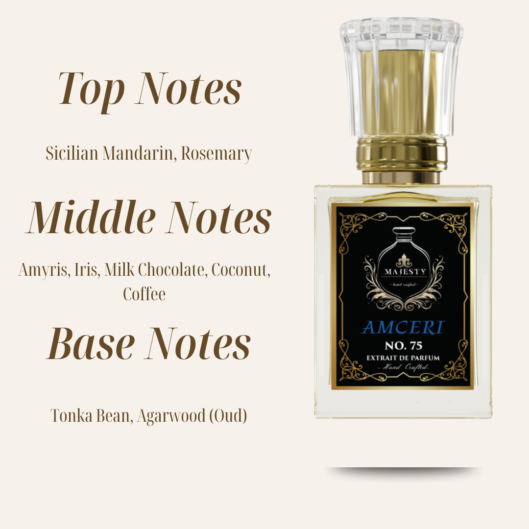 Amceri by Majesty, inspired by Amyris Homme, is a refined and modern fragrance that captures the essence of effortless sophistication. This scent opens with a bright and invigorating blend of citrus notes, including mandarin orange and rosemary, offering a fresh and vibrant start. The heart reveals a smooth combination of amyris wood and coffee, adding depth and a touch of warmth. The base is enriched with tonka bean, agarwood (oud), and musk, creating a long-lasting and elegant finish. Perfect for the contemporary man, Amceri is a versatile and distinguished fragrance that exudes confidence and charm.