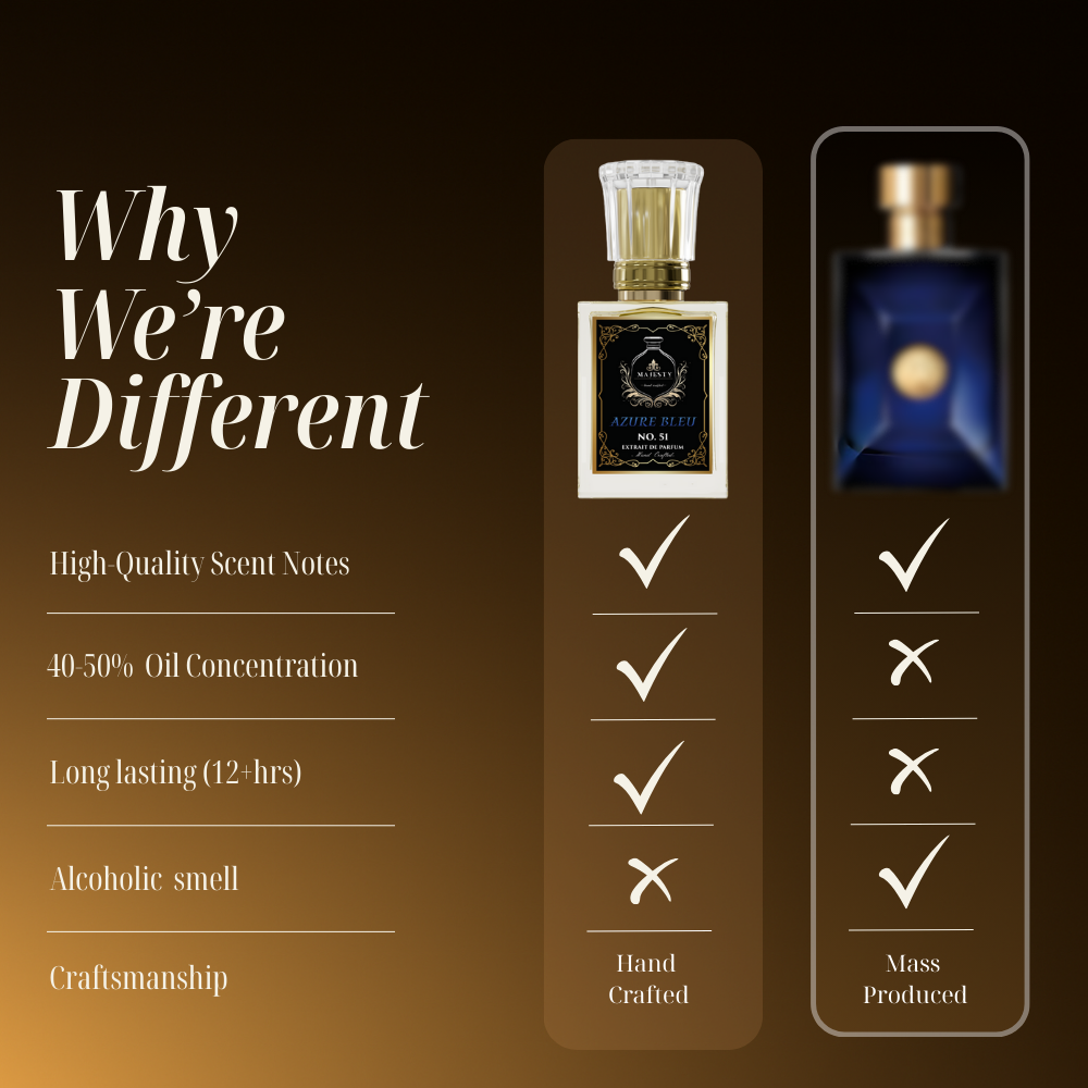 Each fragrance at Majesty's is made from scratch, a symphony of meticulously selected notes handcrafted with love and precision.