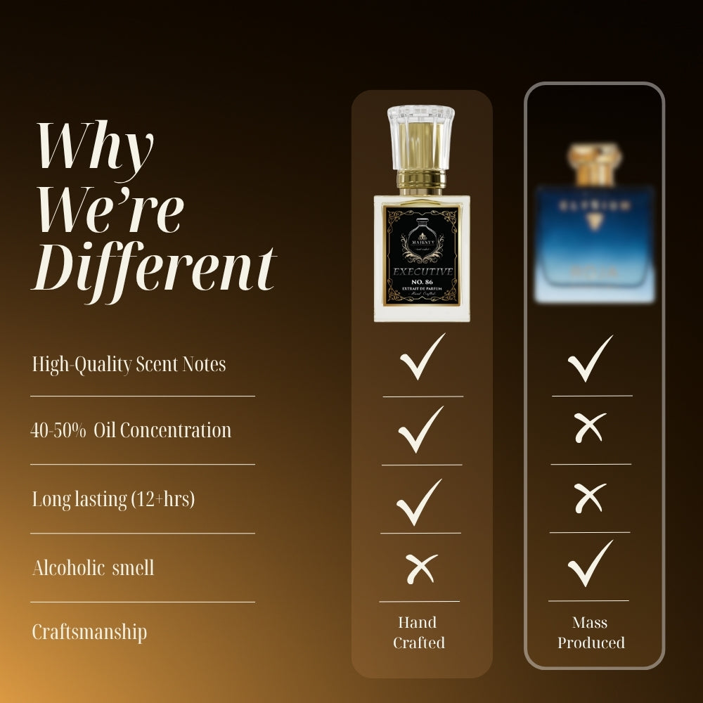 Each fragrance at Majesty's is made from scratch, a symphony of meticulously selected notes handcrafted with love and precision.
