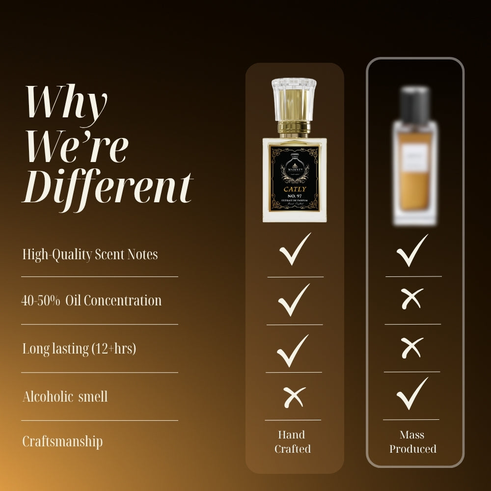 Each fragrance at Majesty's is made from scratch, a symphony of meticulously selected notes handcrafted with love and precision.