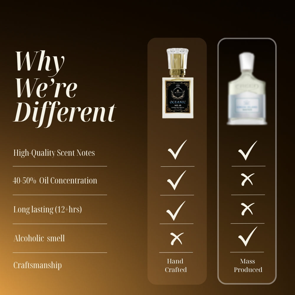 Each fragrance at Majesty's is made from scratch, a symphony of meticulously selected notes handcrafted with love and precision.