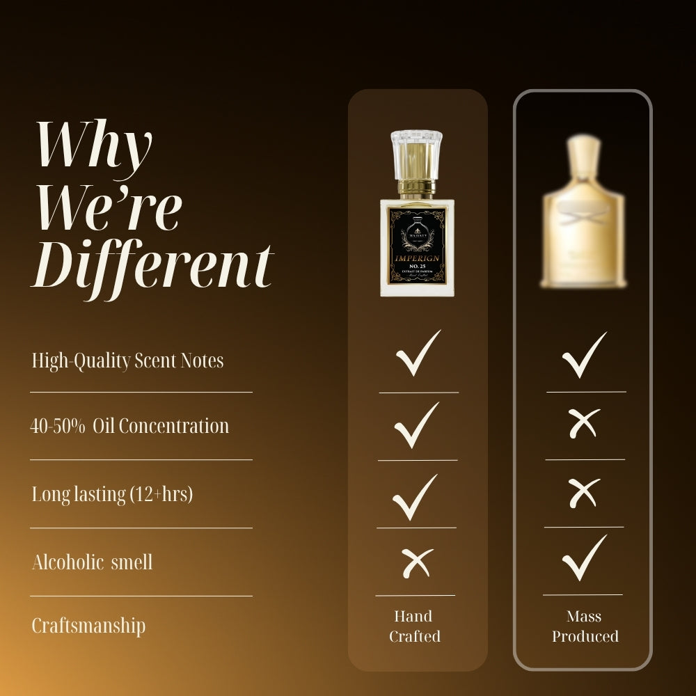Each fragrance at Majesty's is made from scratch, a symphony of meticulously selected notes handcrafted with love and precision.
