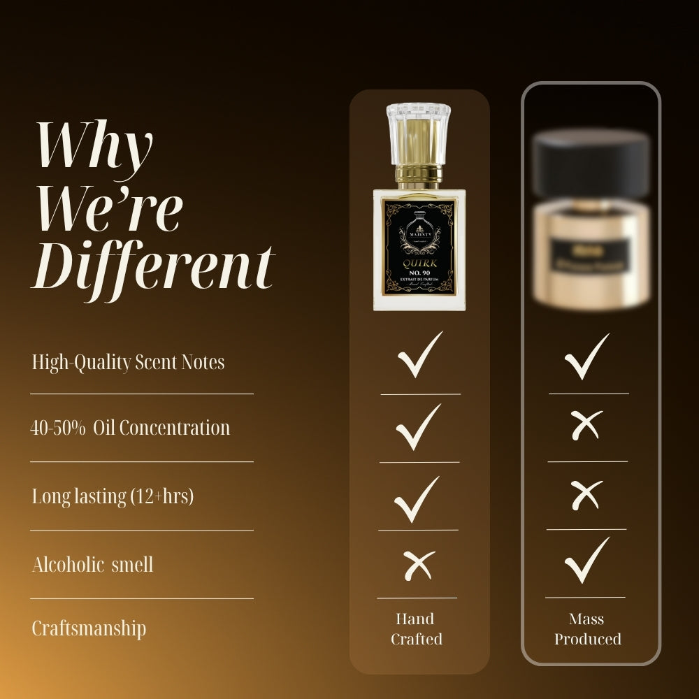 Quirk by Majesty, inspired by Kirke, is a whimsical and playful fragrance that captures the essence of carefree charm. This scent opens with a delightful burst of fruity notes, including juicy peach and sweet pear, creating a bright and cheerful introduction. As it develops, a bouquet of fresh floral accords, such as jasmine and violet, emerges, adding a touch of elegance and femininity. The base is grounded by warm vanilla and a hint of musk, providing a smooth and comforting finish. Quirk is perfect for those who embrace their unique quirks and seek a fragrance that embodies joy and individuality.