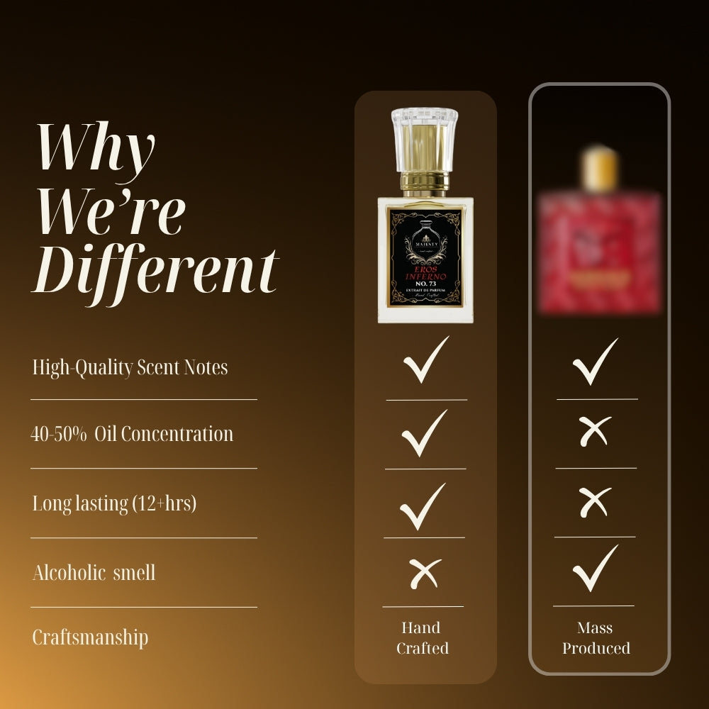 Each fragrance at Majesty's is made from scratch, a symphony of meticulously selected notes handcrafted with love and precision.