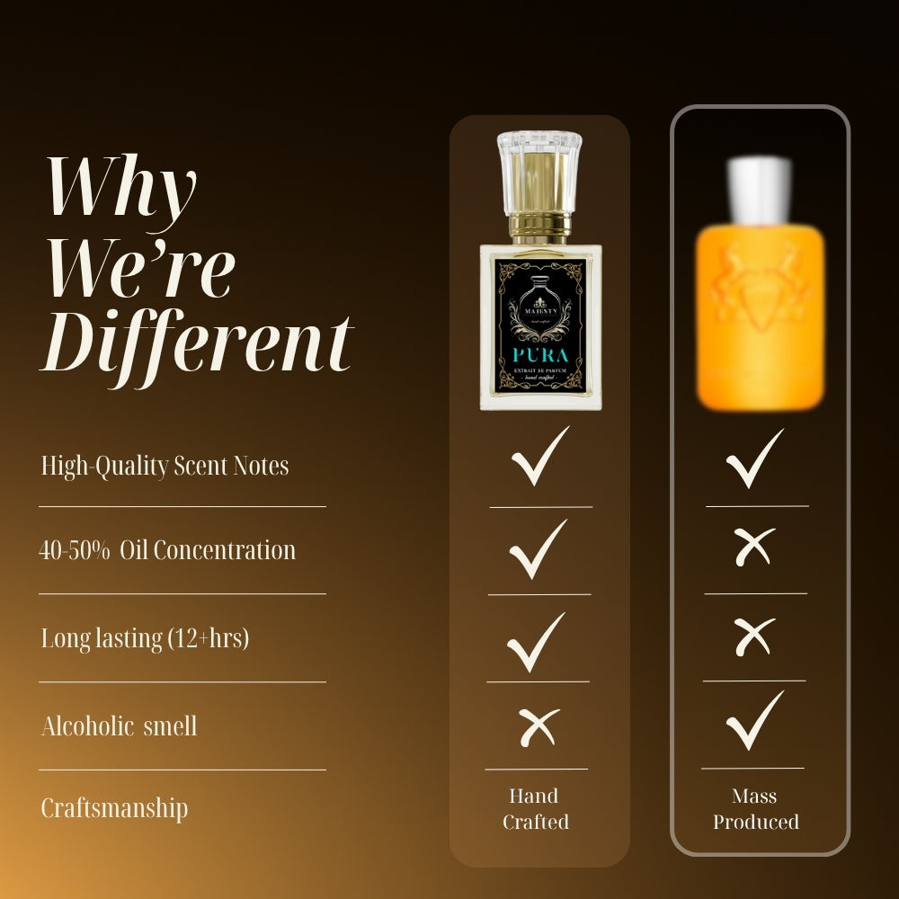 Each fragrance at Majesty's is made from scratch, a symphony of meticulously selected notes handcrafted with love and precision.