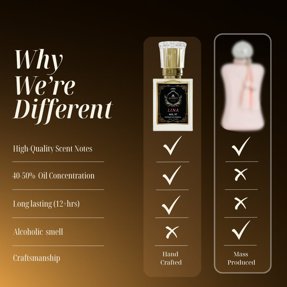 Each fragrance at Majesty's is made from scratch, a symphony of meticulously selected notes handcrafted with love and precision.