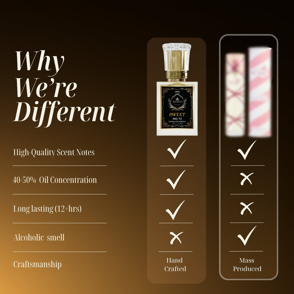 Each fragrance at Majesty's is made from scratch, a symphony of meticulously selected notes handcrafted with love and precision.